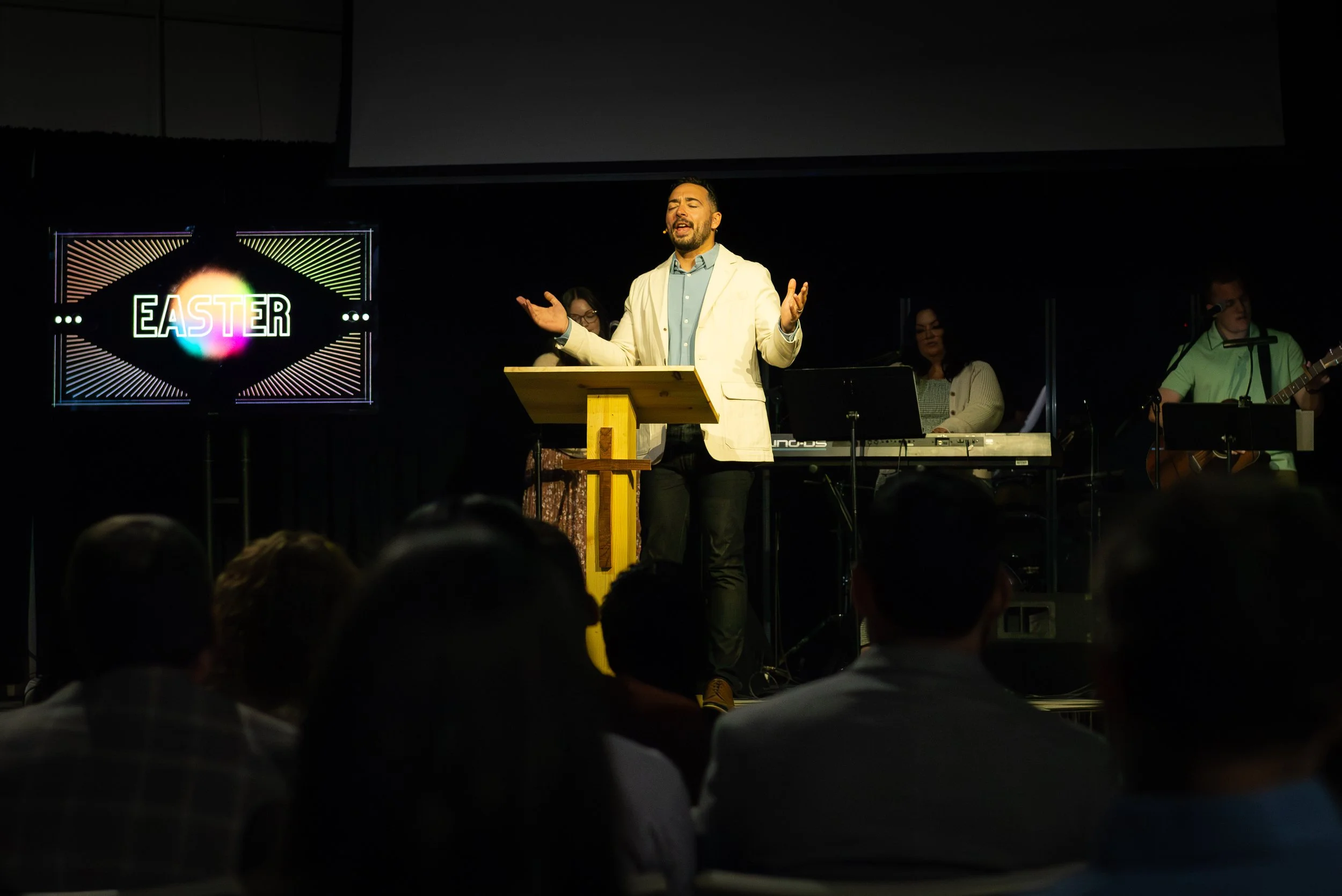 We are a non-denominational church with a casual, welcoming, and family-friendly feel. Click here to get directions. There is plenty of parking, or if you live near by, walk on over! We are Come-as-you-are. You’ll see people in jeans and casual attire, and others dressed up.